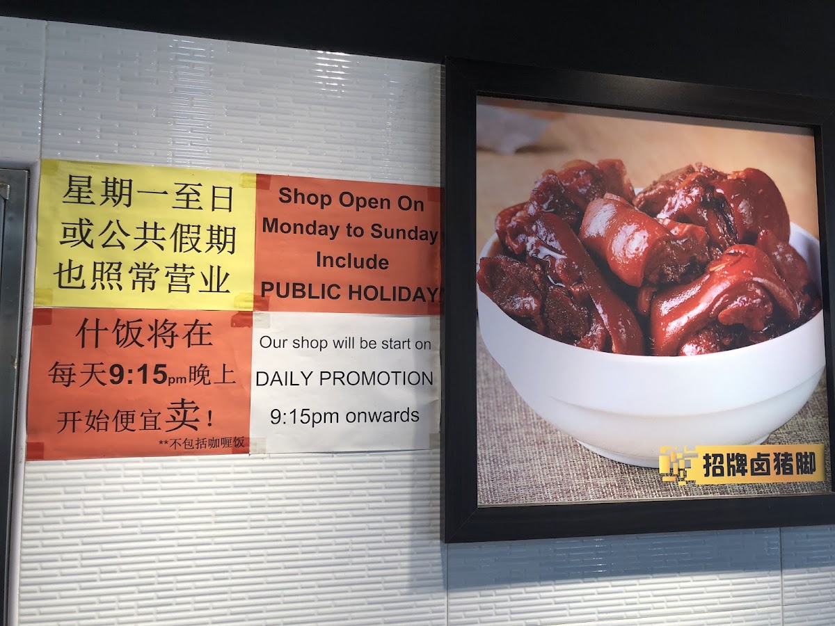 Typical choices include hearty mixed rice with options like steamed egg with pork, flavorful stir-fries such as eggplant with long beans, and familiar favorites like sweet and sour pork. Alongside, you might find lighter staples like porridge or simple egg fried rice, accompanied by warming herbal teas or the free soup of the day that adds a homely touch to your dining experience.